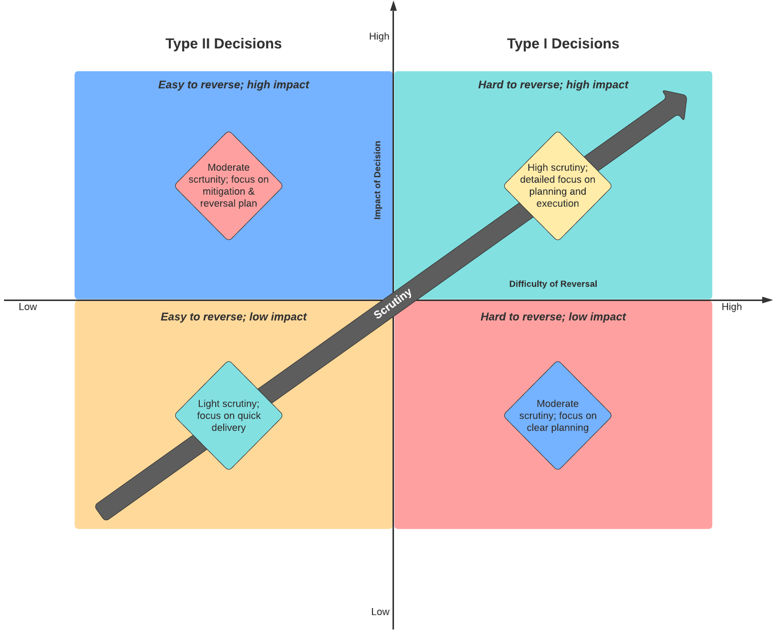 In conversations where a decision is trying to be made it can be helpful to step back and see if the parties involved are classifying a decision similarly. It's vital to get on the same page here—sharing rationale and information to understand what decision is being discussed, and the context around it. The process of getting on the same page on the type of decision being made often leads to a decision being made more efficiently.